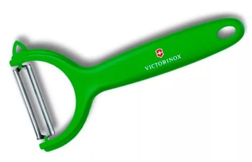 Klasični uređaj u obliku noža za guljenje od poznatog švicarskog proizvođača noževa jedan je od najboljih na ljestvici. Slična jedinica prisutna je u gotovo svakoj modernoj kuhinji. Specifični uređaj vam omogućuje da uklonite tanki sloj kože s nježnim i sočnim proizvodima koje je teško nositi nožem - rajčica i kivi. Posebno izoštren plivajući nož od nehrđajućeg čelika brzo i tanko uklanja sloj određene debljine od odabranih proizvoda. Rezultat će biti savršeno očišćeno povrće i voće.