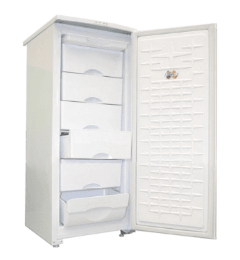 Zamrzivač iz provjerene marke Saratov ima najveći volumen u kategoriji proračuna - 135 l. Taj prostor raspoređen je između šest prilično prostranih ladica. Budući da je zamrzivač jeftin, nema dodatnih opcija. Elektromehanička kontrola, prisilno odmrzavanje. Model je dobar, ali troši dosta struje (klasa B).