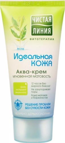 Ruski proizvođač, kojeg znaju i vole gotovo svi. Čista linija ženama donosi radost već dugi niz godina zahvaljujući jedinstvenim svojstvima pomlađivanja. Učinak ove mat kreme je upečatljiv, jer izjednačava ton lica, eliminirajući masnu kožu. Tvari u sastavu se aktivno bore protiv masnog sjaja i njegovih uzroka. Svježi miris čini postupak aplikacije ugodnim. Proizvod ne ubada niti iritira kožu.