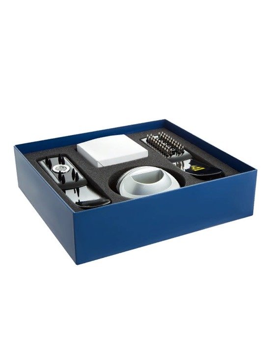 Na bočnoj strani uređaja možete pronaći gumb za uključivanje / isključivanje funkcije vibromasaže. U recenzijama se često piše da masažna funkcija dobro uklanja glavobolje, što je posebno važno nakon napornog dana. Kvaliteta laserskog češlja potvrđena je mnogim europskim certifikatima. Također vrijedi spomenuti skup muških ukhodovye alata u visokokvalitetnom prošivenom kućištu na bravi, i to: češalj, ogledalo, nokat, škare za nokte, pincete za nokte i obrve, britva i 3 izmjenjive oštrice. Ovaj će set biti najbolji dar za muškarce.