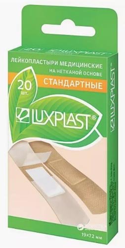 Ljepljiva žbuka, dobro se nosi sa svojim funkcijama. Baza tankog polimernog filma s hipoalergenskim ljepilom lako se fiksira na kožu i štiti oštećeno područje od vanjskih utjecaja. Antiseptička podloga izrađena je od viskoze. Nakon uklanjanja nema tragova niti trake ni antiseptika.