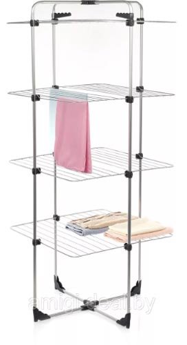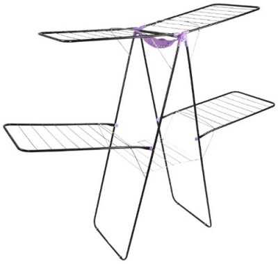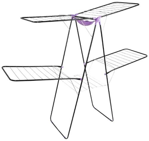 Neobičan dvoslojni sušač privlači kreativni dizajn i broj površina za sušenje, ukupno 27,5 metara. Ovo je najbolja opcija za one koji imaju prostranu perilicu rublja i voli je maksimalno učitati. Ne zauzima puno prostora i savršeno se uklapa čak i na malom balkonu. Model je izrađen od visokokvalitetnog čelika, prekriven bojom. Izrađuje se samo u crnoj boji s lila elementima. U središtu se nalazi mjesto za košaru za rublje, ali ako želite, tamo možete objesiti rublje.