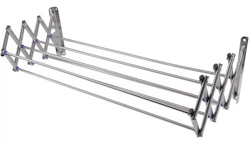 Zidna sušilica za rublje u metalik boji savršena je za malu kupaonicu koja nije uređena u svijetlim bojama. Klizna konstrukcija, mehanizam-harmonika i nehrđajući čelik jednostavno su stvoreni za prostore sa svijetle boje. Šest metalnih šipki s vremenom neće padati i neće se otpustiti zbog visoke kvalitete proizvoda.