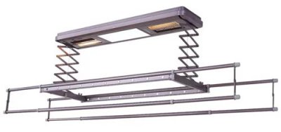 Jedinstvena automatska električna sušilica koja nema analogije na tržištu. Sadrži lampe za grijanje i dodatne ventilatore, što znatno ubrzava proces sušenja. Samo dvije prečke omogućuju istodobno sušenje 35 kg stvari. To je nekoliko puta više od klasičnih stropnih opcija. Visina poprečne grede regulirana je daljinskim upravljačem koji je uključen. Njihova duljina također varira (maksimalno - 230 cm). Kontrola uređaja pomoću daljinskog upravljača može se obaviti s bilo kojeg mjesta u kući.