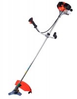 Blokada gasnog okidača koja se nalazi na upravljačkoj ručici sprječava slučajno potiskivanje i osigurava sigurnost korisnika. Paket uključuje ne samo liniju za ribolov i nož, već i list pile, s kojim se možete riješiti obrastanja tankih stabala. Za pripremu mješavine goriva u kompletu nalazi se spremnik s mjernom skalom koji vam omogućuje kuhanje u odgovarajućim omjerima. Ostale karakteristike: zapremina motora - 52 cm³, kapacitet spremnika - 1,2 l., Brzina rotacije noža - 6500 o / min, širina trake za košnju - 51 cm.