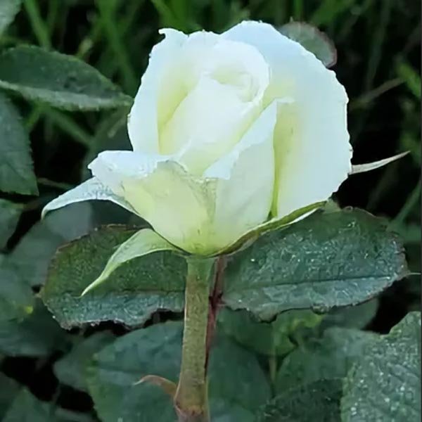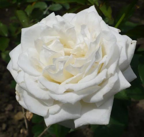 “Kraljica vrta”, “najbolja bijela ruža” - čim se ova sorta ne nazove hibridnom čajnom ružom. Ovo je uistinu lijep cvijet savršene čiste boje. Oštar gusti pupoljak, postupno se otvara, pretvara se u malu šalicu. Otkrivajući još više, latice izlažu crveno-narančaste prašnike, dajući cvijetu malo koketiranja. U slučaju nepotpunog otkrivanja, glava izgleda blijedo-bež, kremasta, ali brzo postaje snježno bijela sa srebrnastim sjajem.