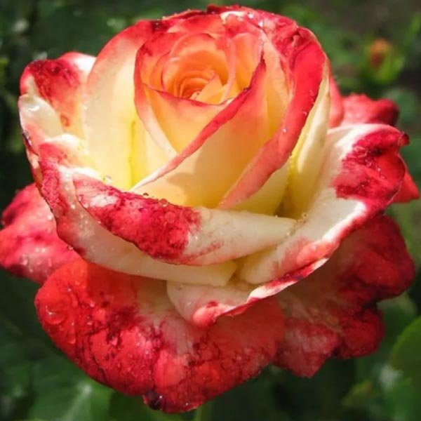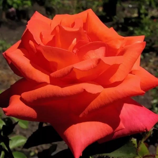 Hibridni čaj s izuzetnom ljepotom cvijeća bit će prekrasan ukras vrta ili ugodan dodatak buketu. Latice složene boje žuto-maline-lososa čvrsto stoje u čaši, stvarajući idealan klasični oblik pehara. Sorta izgleda sjajno u bilo kojoj fazi cvatnje. Kada se pupoljak tek počinje otvarati, boja se može jasno pratiti od žute (u sredini) do svijetle, gotovo crvene. Kod potpunog otkrivanja, granice su nejasne, a tranzicija izgleda ujednačenija.