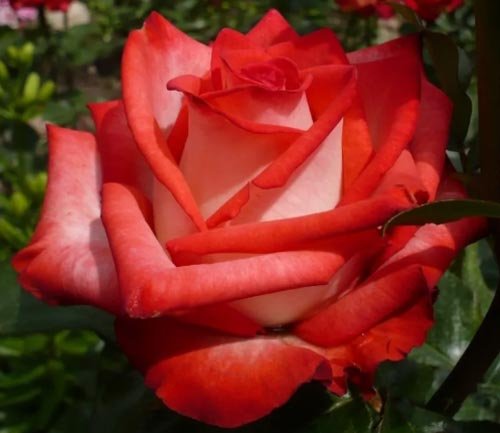 Najpoznatija sorta na svijetu, koja nakon pola stoljeća nije izgubila svoju popularnost. Ruža, koja se smatra klasičnim, ima cvijeće bogate boje grimizne ili ružičaste trešnje, koje se formiraju na svakom stablu. Također, boja može ovisiti o klimatskim uvjetima i načinu skrbi. Sa strane šavova latice su gotovo bijele, čak i srebrne. Ovaj kontraverzni kontrast osvojit će srce svakog vrtlara.