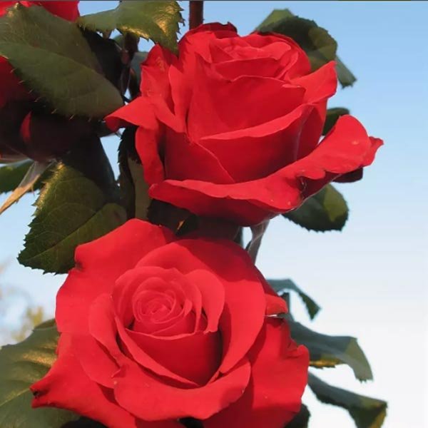 Raznolikost sa stoljećima povijesti i dalje oduševljava vrtlare i ukrašava ružičnjake sve do danas. Ruže čarobne zasićene crvene boje rastu na 1-3 cvijeća na svakoj stabljici. Na prvom cvatu može se vidjeti samo jedan cvijet, u sljedeća dva ili tri cvasti pojavit će se to obilježje danske sorte. Konusni pupoljci, koji se polako rastapaju, pokazuju svu ljepotu i eleganciju frotirnih latica.