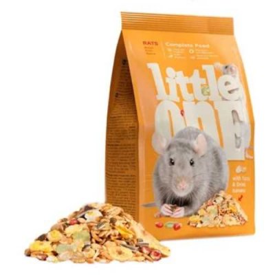 Hrana za štakore Little One - jedan od najpopularnijih predstavnika kategorije. Lako se može naći u bilo kojoj trgovini za kućne ljubimce u zemlji u potpuno različitim formatima, od kojih je najčešći i prikladniji mekano pakiranje od 400 grama. U isto vrijeme, hrana ima sastav koji je sasvim pristojan za svoj novac, iako ne i najbolji, jer se preporuča dopuniti ga voćem i malim brojem izvora bjelančevina, primjerice, sirom sirom. Ipak, sadržaj zobi, heljde, ječma, rogača, graška i sjemenki od soje, pšenice, suncokreta i lana čini hranu vrlo hranjivom i korisnom. Osušene banane, zračni pšenica i kokice, koje su također dio Little One, posebno su voljene od strane većine štakora.