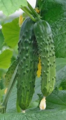 Prinos daje uobičajeni oblik ovalnog cilindra krastavaca. Duljina do 25 cm, koža nije potpuno nodularna i ima bodlje. Ističe se pristojnim klasičnim okusom. Plus za nestrpljive vrtlare će biti rano sazrijevanje uzorka. Tip sjemena obično je oprašivanje pčela, a ne samooplodnja. Visoko zaštićen od virusa i bolesti vanjskog okoliša, ali može umrijeti od truleži korijena. Agronomi savjetuju da se tip isključivo stavi pod zaštitu - u staklenicima ili staklenicima.
