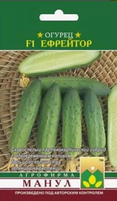 Izvrstan primjer kombinacije svestranosti i preuranjenosti.To će biti odličan izbor za uzgoj u svim dijelovima zemlje. Plodovi su dugi, daju malo ovalno povrće sa šiljcima crne boje, istaknute brežuljcima i bogatim hladom. Odlikuju ih najbolji okus i aroma svojstveni samo ovoj vrsti proizvoda. Gorčina u pulpi nije uočena, karakterizirana je visokom razinom krckanja. Plodovi su prepoznatljivi kao izvrstan proizvod za kisele krastavce i za upotrebu u salatama.