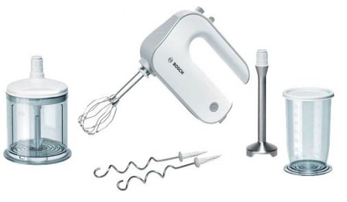 Lider u ocjeni ručnih mješalica je Bosch MFQ 4080, najpopularniji višenamjenski uređaj. Zahvaljujući bogatoj opremi sa svim vrstama mlaznica, mikser iz “Boscha” može premazati, sjeckati, gnječiti gusto tijesto, miješati mljeveno meso, sjeckati luk i samljeti svježe bobice. Lako ga je oprati, a zahvaljujući dugom kabelu za napajanje ne možete brinuti o udaljenosti do utičnice (usput, kratki kabel nema mnogo modela).