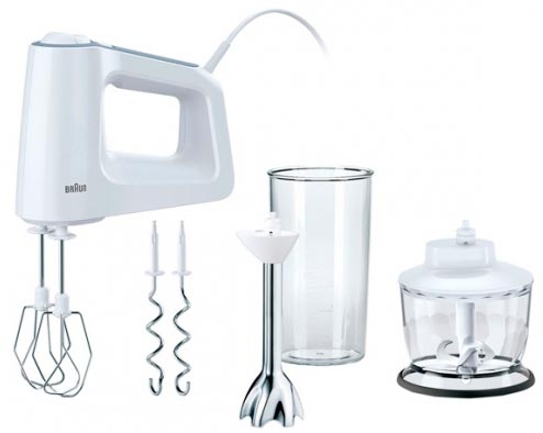 Drugo mjesto na ljestvici - Braun HM 3137, vrhunska mješalica popularnog njemačkog brenda, koja je sastavljena u Rumunjskoj. Glavna prednost miksera, koji ga povoljno razlikuje od konkurencije, je dobro osmišljen dizajn i vrlo mala težina. Motor u "smeđoj" nalazi se vertikalno, što znatno smanjuje opterećenje na rukama. Štoviše, težina uređaja je samo 820 grama, oko 30% manje od mase konkurenata u pitanju. Kompletan uređaj najoptimalniji je za kućnog korisnika: univerzalni sjeckalica, metlica za premlaćivanje, kuka za tijesto i visokokvalitetni nastavak za miješanje. Proizvođač nije ograničio niti čak stavio u komplet set mjernu posudu na 600 ml. Vrlo udobno!