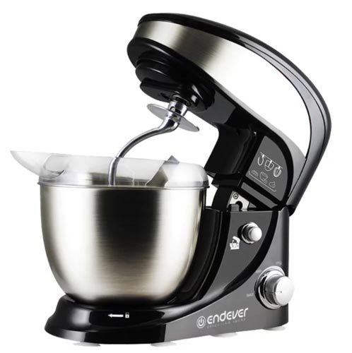 Stacionarni planetarni mikser za kuću ENDEVER SM-10 skreće pozornost na njegov izgled. Njegov dizajn podrazumijeva lagano podizanje glave, a tijelo je izrađeno u neobičnom stilu. Kombinacija crnih i metalik boja savršeno će se uklopiti u svaki interijer. Posuda od 4 litre izrađena je od nehrđajućeg čelika i opremljena je posebnim zaštitnim poklopcem. Tijekom rada ne možete brinuti o prskanju mase.