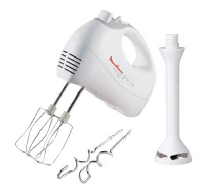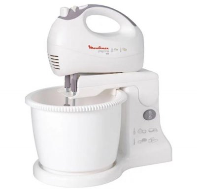 Mikser popularne marke Moulinex zauzima vodeće mjesto u vrhu najboljih. Idealan je za dom, ima najbolje performanse za najudobnije kuhanje. Mješalica s rotirajućom posudom osigurava ravnomjerno premještanje i miješanje. Potpuno je izrađen od plastike koja je izrađena u bijeloj nijansi. Maksimalna snaga doseže 450 W. Postoji 5 brzina za odabir.