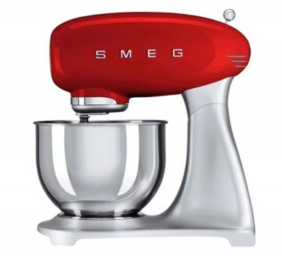 Jedan od najpopularnijih industrijskih mješalica, prema ocjenama, je Smeg SMF01. Talijanski proizvođač je model s izvrsnom snagom od 1000 W i najboljim performansama. Radi lakšeg snalaženja, postoji 10 brzina i nekoliko korisnih mlaznica, uključujući i metlice, kuke, a također i posebne za premlaćivanje gustih smjesa. Tijelo je u potpunosti izrađeno od metala, a posuda je izrađena od izdržljivog nehrđajućeg čelika. Model je vrlo prikladan za korištenje - gornji dio se lako spušta, a uklonjivi elementi se lako održavaju.