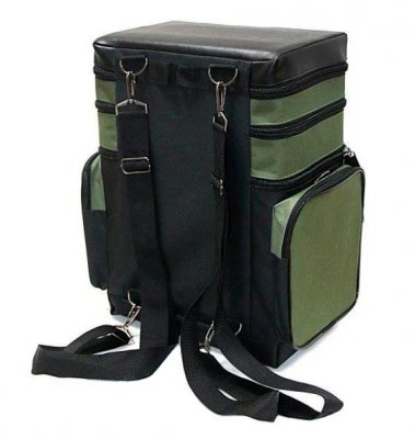 Luksuzna kutija s visokom funkcionalnošću ima zanimljiv dizajn, kombinirajući nekoliko stavki odjednom: kutiju za zimski ribolov, ribarsku torbu i ribarski ruksak. Okvir je izrađen od najtrajnije pjene, koja se koristi u zrakoplovstvu, a zatvorena je u izdržljivoj sintetičkoj tkanini. Dno je ojačano gumenim vodootpornim slojem za povećanje stabilnosti. Dizajn održava osobu u punoj zimskoj opremi.