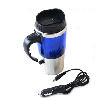 Šalica s adapterom bit će izvrsna akvizicija za vozače koji moraju proći dug put bez mogućnosti zaustavljanja u kafiću. Uređaj se preko adaptera spaja na upaljač za cigarete, zagrijava tekućinu na oko 70 ° C. U šalici možete zagrijati kavu ili čaj na ugodnu temperaturu. Potrošnja energije uređaja za grijanje iznosi samo 12 vata. Tijelo i tikvica izrađeni su od kvalitetnog nehrđajućeg čelika, izdržljivi su i pouzdani.