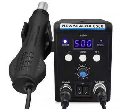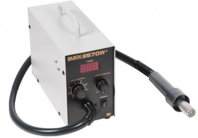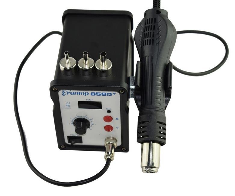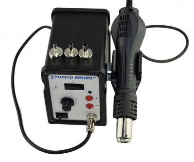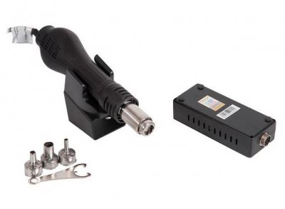 Ovaj model odlikuje se dodatnim termoelementom, kvalitetnom i kvalitetnom montažom, dobrom cijenom. Uređaj učinkovito i brzo rješava svoju primarnu odgovornost - lemni elementi. Tijelo glavne jedinice izrađeno je od metala, sklop je dobar i pouzdan. Svi elementi u bloku su dobro izolirani, vruće ljepilo se lijeva na odgovarajuća mjesta. Snaga uređaja čini 700 W što osigurava veliku brzinu lemljenja. Raspon radne temperature: 100-450 ° C. Dolazi s nekoliko izmjenjivih mlaznica različitih promjera. Vrlo čitljiva i jasna oznaka temperature na glavnoj jedinici. Brzo podešavanje temperature. Zgodan savitljivi kabel ne ometa rad. Sušilo za kosu se nosi s lemljenjem i zalivanjem vrlo malih i složenih elemenata čipsa. Za rad uređaj je vrlo zgodan i udoban.