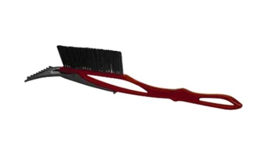 Na suprotnoj strani četkice nalazi se češalj izrađen od istog materijala koji izvrsno čisti staklo tijekom teškog tuširanja. Radne oštrice strugača su pokretne, tako da su uvijek na površini koja se čisti pod pravim kutom. Za praktičnost čišćenja bočnih retrovizora i prozora, oprema za uklanjanje snijega lako se pretvara u dva odvojena alata.