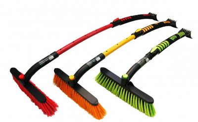 Najpristupačnija četka savršeno se nosi s čišćenjem karoserije automobila i elementima za glaziranje od snijega ili leda. Strugač ima šiljke koji pomažu da se razbije mraz koji je nastao. Tijelo alata je lišeno teleskopskog dizajna, međutim, olakšava dolazak do srednjeg dijela automobila.