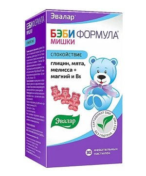 Tablete za žvakanje "Formula Formula Bears Tranquillity" iz Evalara nježno, ali učinkovito smanjuju učinke stresnih situacija, uklanjaju osjećaj tjeskobe i pretjeranog uzbuđivanja, poboljšavaju kvalitetu dječjeg noćnog sna. Osnova proizvoda je uravnotežena kombinacija glicina, ekstrakta mente, matičnjaka i vitamina B6. Zahvaljujući prikladnom obliku unosa i prirodnog voćnog soka u sastavu, pastile ne uzrokuju odbacivanje kod djece - prihvaćaju se s užitkom čak i od najvidljivije djece. Ovaj dodatak se preporučuje za stabilizaciju živčanog sustava u bolesnika od 3 godine. Dnevna doza - 1 kom. po danu, trajanje prijema - najmanje mjesec dana.