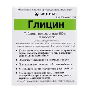 "Glicin" - jedan od najpristupačnijih i popularnih lijekova, koji se naširoko koristi u bolestima živčanog sustava. Vrlo prikladan za liječenje i odraslih i djece. Smanjuje psiho-emocionalni stres, ispravlja devijantna ponašanja, olakšava socijalnu prilagodbu. Dopušteno korištenje od 3 godine do 1 tablice. do 3 puta dnevno. Prosječni tijek liječenja je od 7 do 14 dana.
