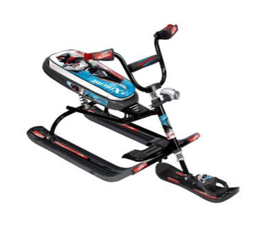 Vrlo čvrst i pouzdan snježni skuter s izduženim sjedalom koji se može koristiti za istodobno skijanje dvoje djece. Okvir je izrađen od metala, tri su skije izdržljive plastike. Sofisticirani sustav prigušivanja sprječava jake udarce tijekom skokova, mogućnost kočenja vam omogućuje da brzo zaustavite ako je prepreka ispred, a mekana sjedala dodaju udobnost. Da bi se dijete pomaknulo niz ulicu, osiguran je kabel za vuču. I za sigurnost samostalnog klizanja djece.