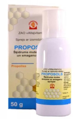 Jedan od najučinkovitijih sprejeva ruske proizvodnje. Jedinstvenost Proposola je u njegovom sastavu. Pčelinji med je skladište korisnih tvari. Njegova antibakterijska i protuupalna svojstva omogućuju uklanjanje patogenih mikroorganizama koji se nalaze u ždrijelu tijekom razdoblja bolesti dišnog sustava. Propolis kao dio preparata dezinficira i anestezira zahvaćena područja grla. Prskanje se preporučuje ne više od 3 puta dnevno.