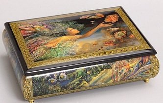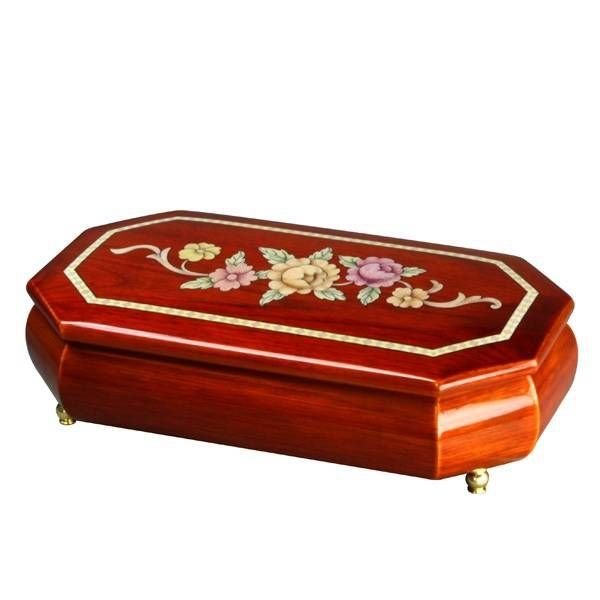 Tvrtka Polite Crafts & Gifts, poznata od 2000. godine, nudi elegantnu kutiju koja zadivljuje ne samo svojim izgledom, već i praktičnošću. Proizvod je klasičnog pravokutnog oblika, ali polukružne bočne stijene daju mu eleganciju, nazvanu "drevne duboke tradicije". Umjetničke slike na svakoj površini zaštićene su lakom na vrhu, što dodatno daje vizualni efekt sjaja.