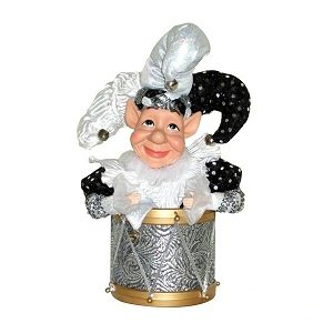 Odjeća klauna izrađena je od tekstila u crno-bijeloj boji, s dodatkom mekog punjenja u kapici. Uzorci, šljokice i minijaturna zvona daju dodatku jedinstven izgled. Mehanička unutarnja struktura kutije ne zahtijeva posebno održavanje. Trajanje melodije dostiže nekoliko minuta. Model će organski ukrasiti rasadnik.