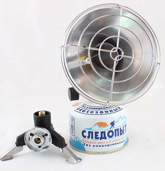 - Keramička infracrvena veza - najmanji i najlakši grijači, koji su optimalni za zimski ribolov ili planinarenje. Zagrijavanje prostorije odvija se zbog zagrijavanja ugrađene keramičke ploče pomoću infracrvenog odašiljača - potonji se aktivira spaljivanjem plina u plamenika.