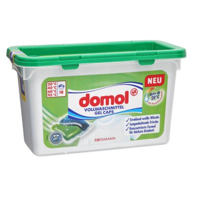 Alat je dermatološki ispitan i ne sadrži fosfate, stoga je pogodan za pranje dječje odjeće. Homogene zelene kapsule dostupne su u pakiranju od 20, kao iu vrećama za one koji žele uštedjeti prostor u kupaonici. Glavne prednosti: bez sivila na odjeći, čak is brojnim pranjima, prikladnim šaržnim formatom, inovativna formula za vraćanje svjetline. Nedostaci: Domol Gel Caps Universal kapsule nisu u stanju nositi se sa starim, tvrdoglavim mrljama.