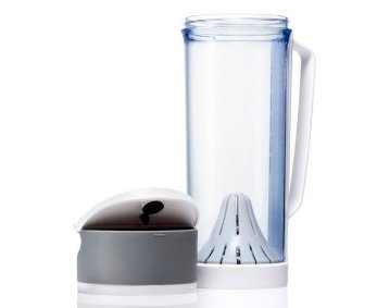 Našli smo i-Water Home 1400 jedan od najboljih zbog lakoće proizvodnje ionizirane alkalne vode. Razina pH doseže 8,5, tekućina dobiva reducirajuća svojstva. Osnova uređaja je filtar od magnezija, aktivnog ugljena, turmalina i elvana. Prema proizvođaču, ova se kombinacija koristi samo u i-Water. To na poseban način mijenja strukturu vode, bolje se apsorbira. Uređaj ne mora biti povezan s mrežom, možete ga ponijeti sa sobom, staviti ga u hladnjak. Dolazi s nepropusnim poklopcem koji sprječava curenje. Filtar traje godinu dana.
