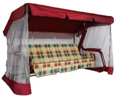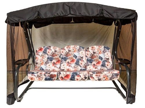 Sjedalo je izrađeno od metalne mreže koja čvrsto podnosi pritisak bez deformacija. Rešetka koja je pričvršćena na objekt sigurno će vam dobro doći - štiti vas od raznih insekata i prašine. Nadstrešnica otporna na vlagu pomoći će da se zaklonite od kiše i gledate kako kapi padaju na sigurno mjesto, uživajući u posebno ugodnom zraku. U korisničkim recenzijama možete pronaći oduševljene komentare. Međutim, neće svatko dobiti takav zamah zbog visoke cijene.