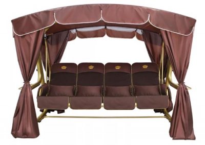 Trostruka ljuljačka s takvim naslovom govori se klasificira kao premium razred. Njihovim stjecanjem moguće je povoljno istaknuti društveni status - oni će postati pravi ukras vrta. Aristokrat je poznat po svojoj mekani kauč i udobnim naslonima za ruke. Tkanina visoke čvrstoće iz koje se izrađuje kauč će trajati mnogo godina. Okvir je u cijelosti izrađen od smreke, tako da su svi kupci sigurni u snagu ljuljačke. Pouzdani spojni elementi neće dopustiti strukturi da se probije čak iu "ekstremnim" uvjetima za to.