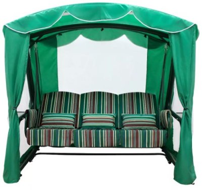 Jedan od najboljih predmeta interijera s prilično razumne cijene u odnosu na mnoge druge. Dobar odmor u velikoj tvrtki na svježem zraku omogućit će ugradnju ovog modela. Veliki plus su lučne noge, koje pružaju praktičnost tijekom rada. Na trosjedu će se smjestiti tri osobe ukupne mase do 320 kilograma. Takvu visoku čvrstoću proizvođači postižu zahvaljujući visokokvalitetnim materijalima okvira i pouzdanim pričvrsnim elementima. Podesivi naslon za udoban odmor.