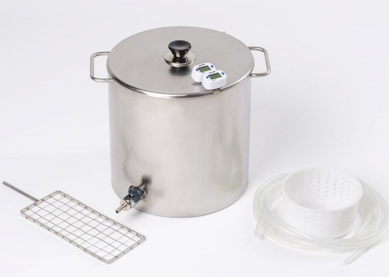 Uređaj od visoko legiranog čelika je dizajniran da zadovolji zahtjeve prehrambene industrije iu strogom skladu sa sanitarnim standardima. Tako može raditi s majstorom stvaranja sira za kućne potrebe i prodaju. Jedan od najvećih domaćih proizvođača sira namijenjen je velikom volumenu proizvoda i značajnim opterećenjima, tako da su zidovi ojačani do debljine 2mm, kao i kod profesionalne opreme. Dizajn pruža "vodenu jaknu" za ravnomjernu raspodjelu topline. U osnovnoj konfiguraciji tvornica sira od 25 litara, kontrolna jedinica, poklopac i elektronički termometar.