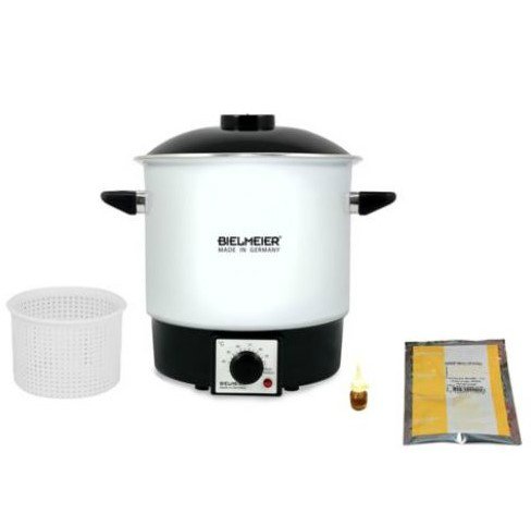 Tvornica sira Sorrento je najbolji izbor za početnike. Uz estetski emajlirani kontejner u dizajnu marke Bielmeier, dobivate 7 g francuskog mezofilnog startera MM101 (Danisco), tekuće životinjsko sirilo (0,015 l), talijanski polipropilenski sirni kalup za 300-400 g. prilično ekonomična potrošnja energije.