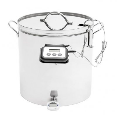 Ova jedinica ima razumnu konstrukciju. Dostupna je izmjenjiva kadica od 15 litara s masivnom ručkom. Zgodan za nošenje i čišćenje. Prisutnost naljepnica unutar pomaka je mali detalj koji olakšava proces točenja tekućina. Vanjski kotao profesionalne kvalitete (21 l) sugerira mogućnost grijanja čak i na indukcijskoj površini, o čemu svjedoči trostruko dno - feromagnetski metal.