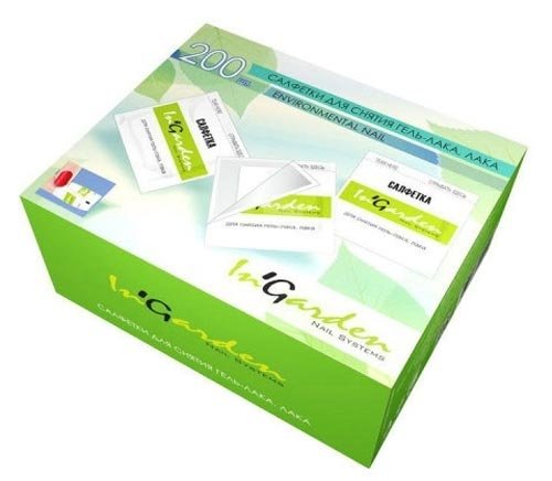 In'Garden je dizajniran za učinkovito i kvalitetno uklanjanje gela. Oni su nezamjenjivi na dugim putovanjima, kao iu svakoj nepredviđenoj situaciji pomažu djevojkama, brzo brišući ružnu manikuru. Neudobnost tijekom postupka je isključena - konzistencija ne ispušta neugodan miris. Korištenje folije nije korisno, alat je izrađen na takav način da lako možete omotati prst. Čak i lakši je slučaj s uobičajenim lakom, da ga uklonite, samo obrišite površinu nekoliko puta.