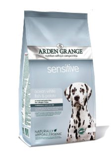 Arden Grange Sensitive izrađen je posebno za odrasle pse s probavnim problemima i osjetljivom kožom. Umjesto uobičajenog proizvođača žitarica dodao je bijelu ribu, iz koje ljubimac dobiva masne kiseline i proteine. Kvalitetni proteini su glavna prednost proizvoda. Ugljikohidrati su kukuruz i riža, što čini oko 50% mase. Jedini izvor lipida ovdje je piletina. Proizvođači ga često koriste, jer se lako probavlja i sadrži tvari korisne za kožu. Neki savjetuju hranu za starije pse zbog kompleksa vitamina za zglobove i ligamente.