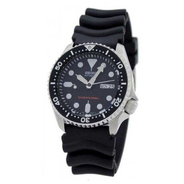 Muški automatski satovi Seiko SKX007 s funkcijom dana i datuma - najbolji su izbor za one koji žele ostati sigurni u ronjenju. Na tamno plavom brojčaniku s mineralnim staklom nalaze se naljepnice s primijenjenim luminiscentnim premazom koje osiguravaju dobru vidljivost čak i noću. Sve snimke su vrlo jasne, ruke su zanimljivog oblika, skladno u kombinaciji s cjelokupnim dizajnom sata. Okvir kvalitete se pomiče u smjeru suprotnom od kazaljke na satu samo u jednom smjeru, broj klikova je 120.