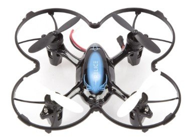 Super-mali quadrocopter može biti spaljen kutijom šibica. To je kompromis za opciju cijene ako je želite dati djeci mlađoj od 9 godina. Dolazi u lijepoj kutiji od kvalitetnog kartona, gdje su USB kabel i 4 izmjenjive oštrice skriveni unaprijed. Prosječno vrijeme leta je oko 4 minute.