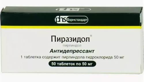 Izvrsno sredstvo za liječenje umjerene depresije, povećane tjeskobe i napada panike. Riječ je o proračunskom ekvivalentu njemačke tvornice Negrustina, koju je vrlo teško pronaći u ruskim ljekarnama. Aktivna tvar pirazidola je pirlindol. Za njegovu najbolju apsorpciju tijelo, kalcij, škrob i laktoza se koriste kao pomoćne tvari, zatvorene u malu pilulu koja se lako guta. Proizvođač preporučuje, bez kršenja cjelovitosti, uzeti tabletu i popiti puno vode.