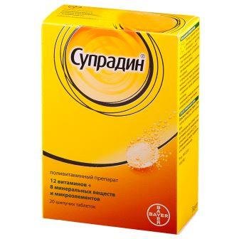 Supradin je dostupan u običnim i šumećim tabletama.Vrlo su ukusne i imaju ugodan okus naranče. Bez sintetičkih dodataka i nečistoća. Preporučeni tečaj za upis je 1 mjesec. Pros: smanjiti umor, sadrže najkorisnije makronutrijente, imati jednostavan režim. Cons: ne može se uzeti na prazan želudac, visoka cijena.