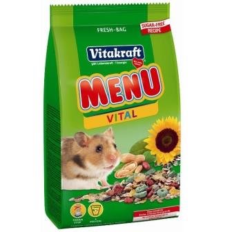 Vitakraft Menu Vital je izvrstan izbor za sirijske hrčke. Mješavina odabranih žitarica i zrnaca u ustima obogaćena je korisnim mineralima. Oni poboljšavaju ukupnu dobrobit životinje i sprječavaju razvoj mnogih bolesti. Osnova najbolje hrane su pšenica, kukuruz i zob. Osim toga, to uključuje sjemenke suncokreta i mahunarke. Najviše ukusnih i zdravih delicija za vašeg ljubimca.