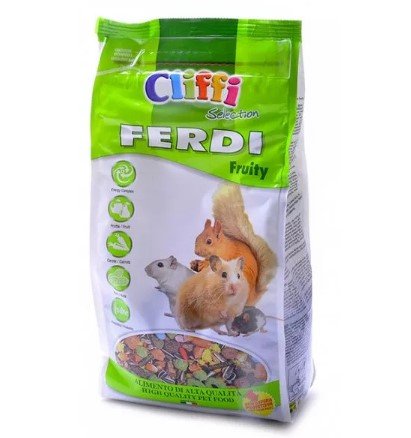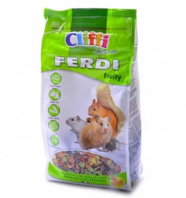 Ako se vaš hrčak brzo umori i malo se pomakne, preporučujemo da odaberete Cliffi Ferdi Fruity Selection feed. Temelji se na suhom voću, orašastim plodovima, mrkvi, mesu i drugim derivatima životinja. Osim toga, uključuje jedinstveni energetski kompleks.Ima tonički učinak na tijelo i obnavlja njegovu prirodnu aktivnost.