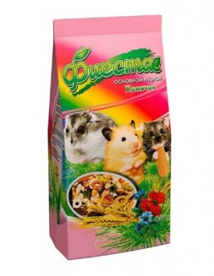 Hranidbena hrana iz “Fieste” za hrčke proizvodi se u suvremenim zatvorenim pakiranjima od 650 g. To čuva aromatična svojstva mješavine s višestrukim umakom i štiti je od negativnih učinaka vlage. Prirodna hrana osigurava potpunu i uravnoteženu prehranu životinje. Mogu hraniti hrčak od različitih pasmina: sirijske, dungarske, itd. Ne ulazi u prašnjavu kad se stavlja u hranilicu, nema tragova plijesni i kvarenja. Među ostalim prednostima: pristupačna cijena, prirodno voće i povrće u sastavu, višebojne granule. Značajan minus je mali unos proteina.